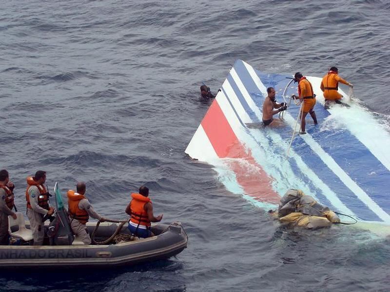 Ein Wrackteil der abgestürzten Air-France-Maschine AF 447 wird von einem Rettungsteam der brasilianischen Marine im Atlantik geborgen. Foto: Brazilian Air Force/Archiv