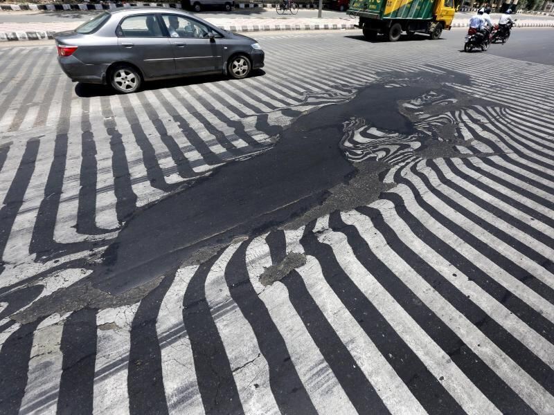 Geschmolzener Asphalt in der indischen Hauptstadt neu Delhi: Die weltweite Durchschnittstemperatur lag im Jahr 2015 so hoch wie noch nie zuvor. Foto: Harish Tyagi/Archiv