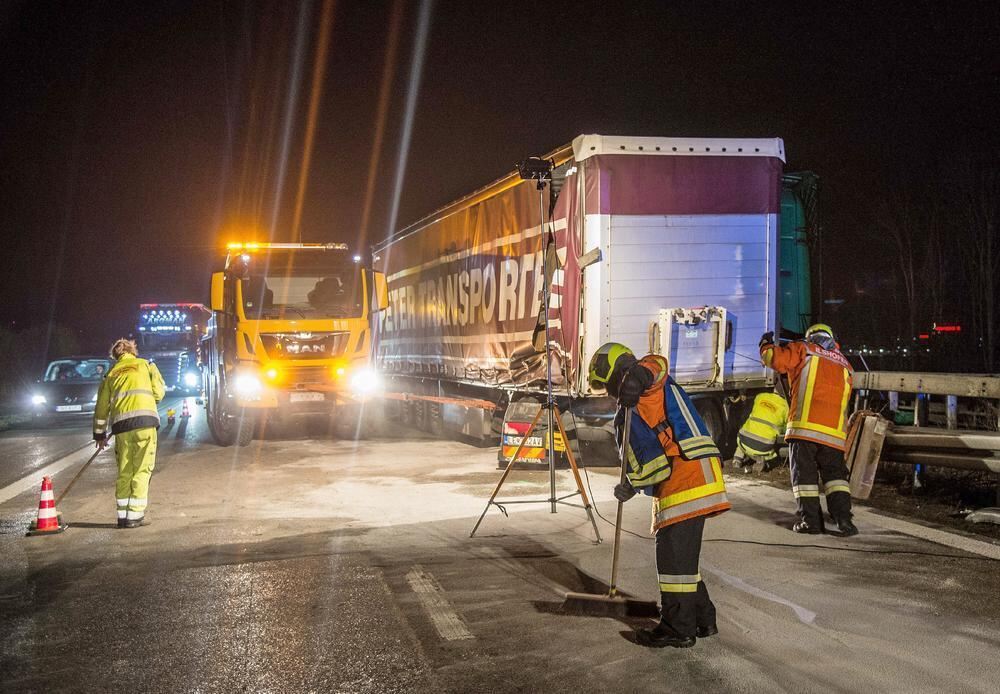 Unfälle mit fünf Lastwagen auf Autobahn - Vier Schwerverletzte