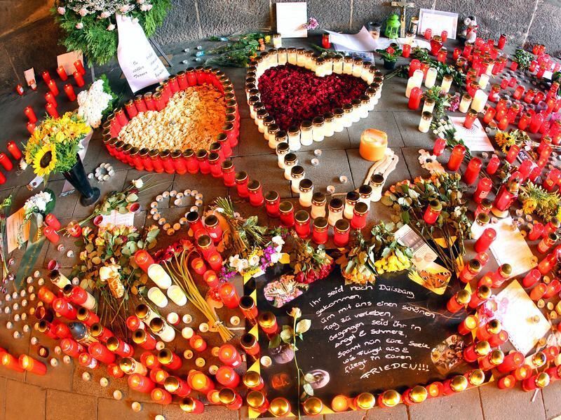 Mit aus Kerzen geformten Herzen drücken Duisburger nahe der Unglücksstelle ihre Trauer aus.