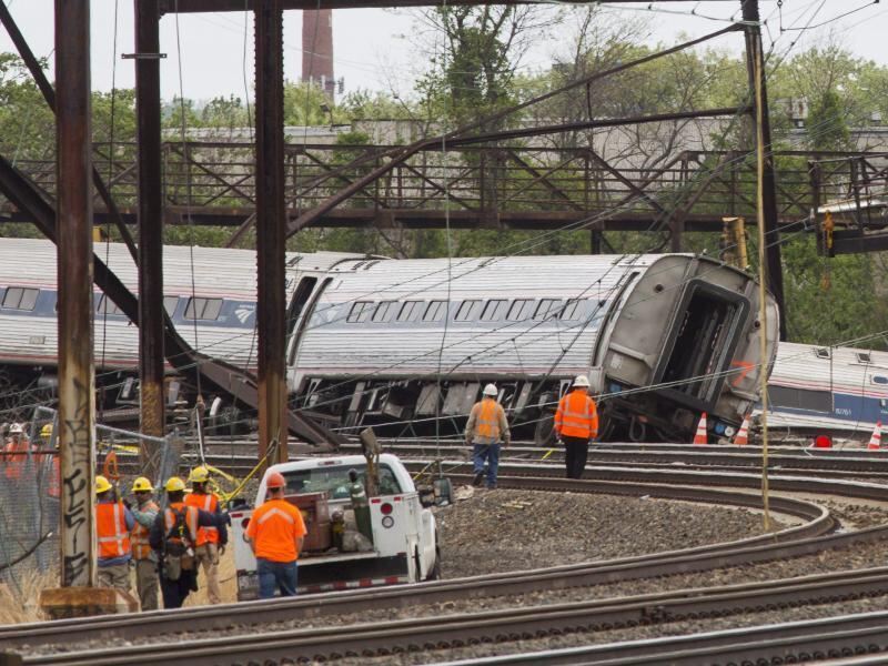 Der entgleiste Amtrak-Zug in Philadelphia. Foto: Mark Stehle
