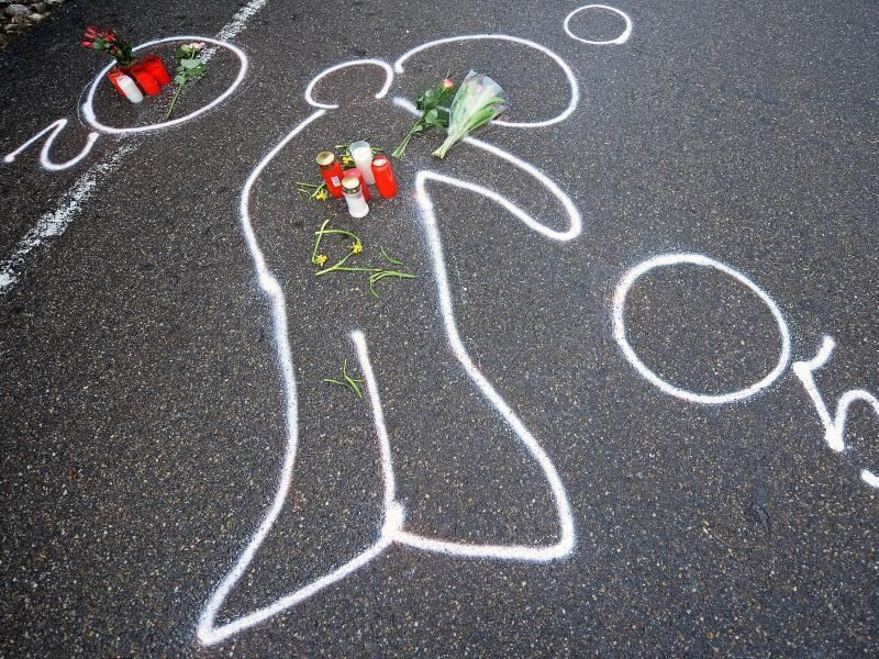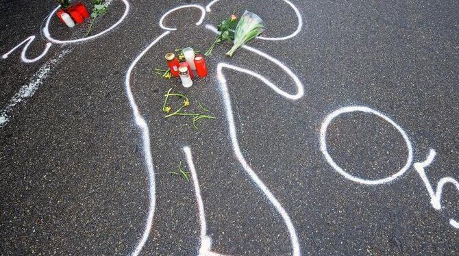 Kreidespuren zeigen den Umriss des Amokläufers Tim K. vor einem Autohaus in Wendlingen am Neckar, wo er sich erschossen hatte. Foto: Ronald Wittek/Archiv