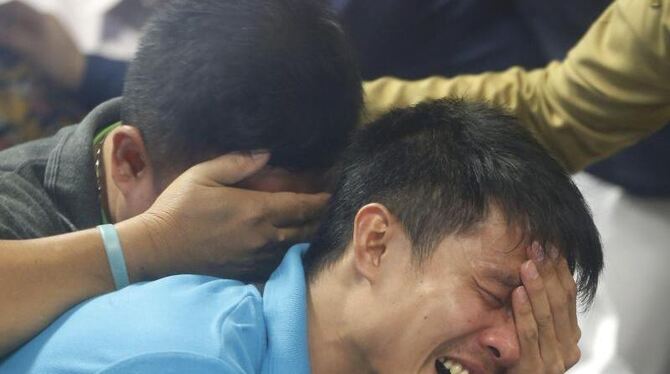 Verzweiflung und Trauer: Weinende Angehörige nach Bekanntgabe der Information, dass Wrackteile und Leichen gefunden wurden. Foto: Made Nagi