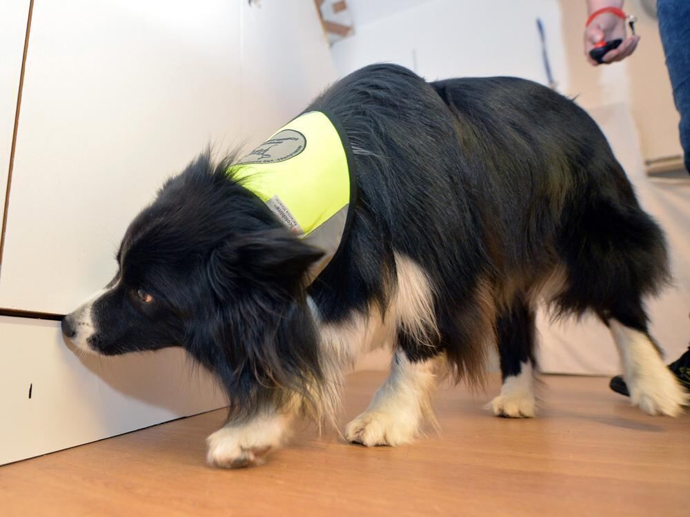 Die sechs Jahre alte Border-Collie-Hündin Naila erschnüffelt als ausgebildete Schimmelpilz-Spürhündin selbst verborgene Belastungen.