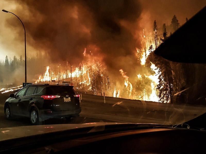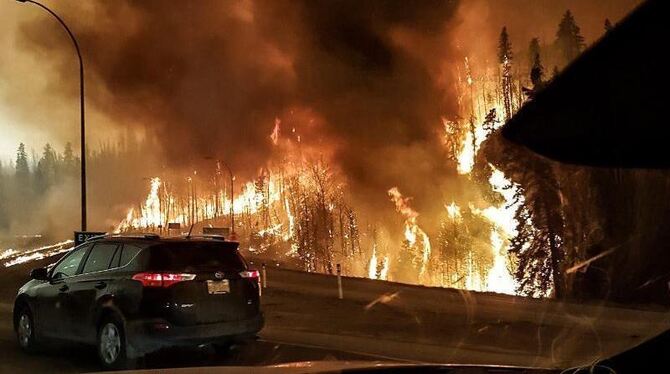 In Kanada tobt ein Waldbrand - und Tausende müssen ihr Heim verlassen. Foto: epa/Twitter/jeromegarot
