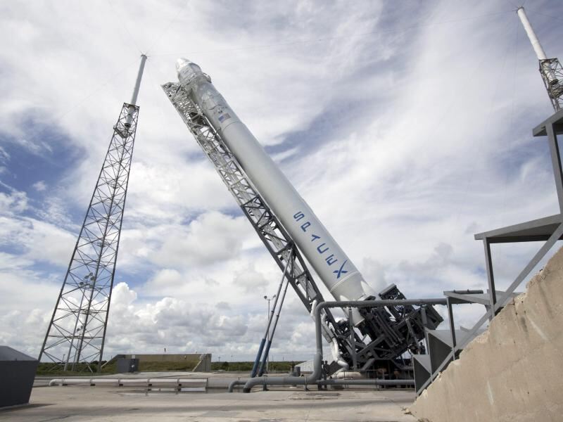 Eine Falcon-Rakete der privaten Raumfahrtfirma SpaceX wird am 7.10.2012 startklar gemacht. Jetzt ist eine dieser Raketen beim Start explodiert. Foto: Jim Grossmann/Archiv