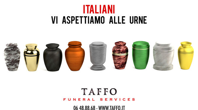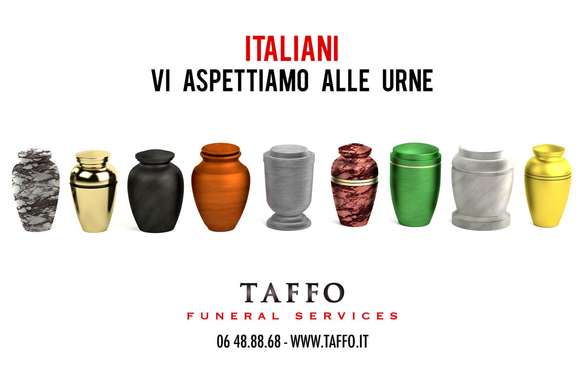 Eine Werbeanzeige, die speziell für die italienischen Wahlen geschaltet wurde, zeigt verschiedene Urnen mit dem Slogan »Italiener, wir warten auf Sie an den Urnen«. Als Bestattungsinstitut mit makabren Sprüchen für seine Dienste zu werben - das muss man sich trauen. (dpa)