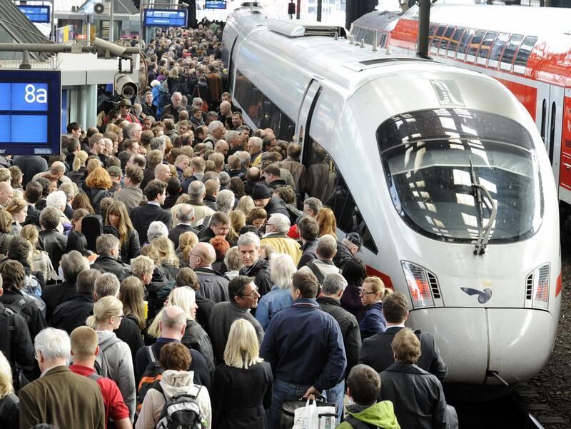 Überfüllter Bahnsteig (Symbolbild): Mit Gutscheinen über 25 Euro hat die Bahn viele Fahrgäste aus einem überfüllten IC-Zug in Münster gelockt