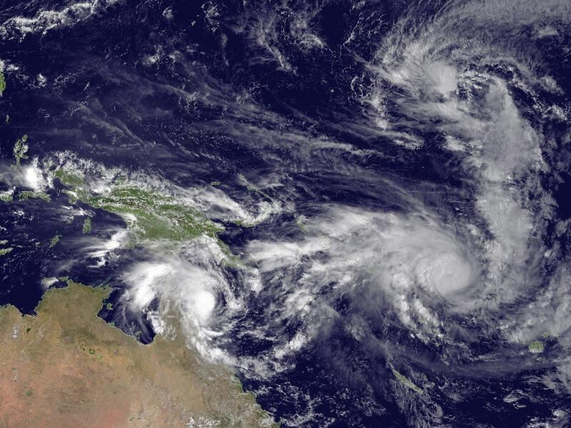 Zyklon Pam ganz rechts im Bild erreichte Sturmböen mit mehr als 300 Kilometern in der Stunde. Foto: Noaa