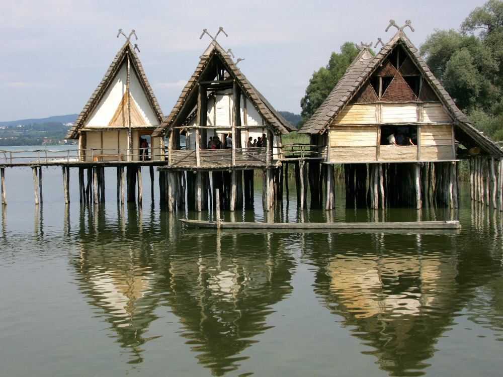 Blick auf die Pfahlbauten am Bodensee in Unteruhldingen.
